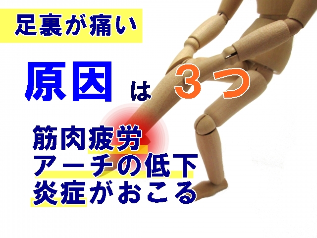 足裏には、体を支えるための筋肉が多くついています。足指の筋肉、足のアーチを整える筋肉、足首を動かす筋肉などあります。これらの筋肉に緊張や過度な負担がかかることで、炎症が起こり痛みを感じます。