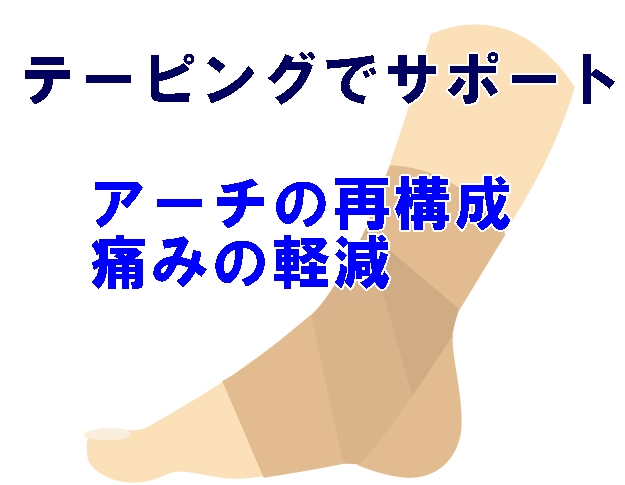 足裏のアーチが下がっているときには、テーピングで補強します。