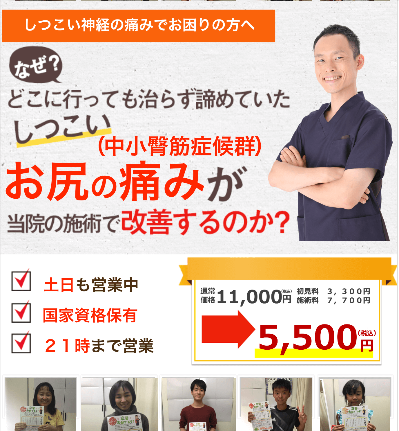 このような場合は中小臀筋症候群を発症しています。早めの受診をお勧めいたします。