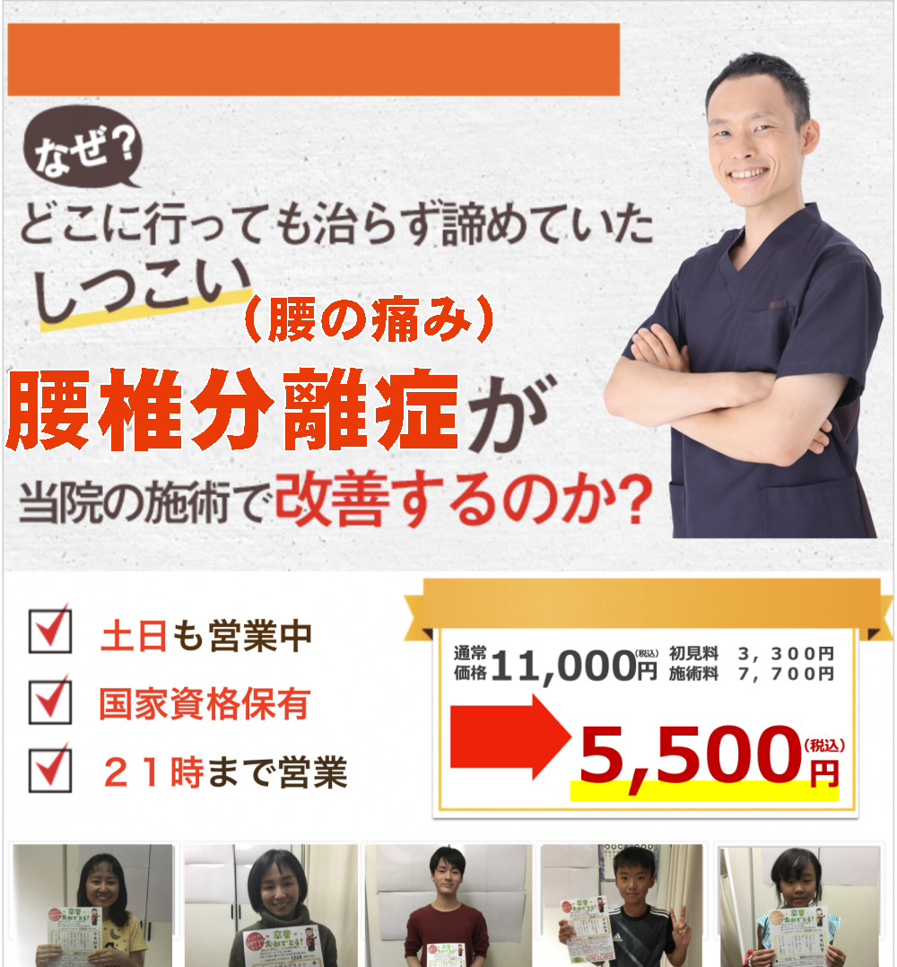 腰椎分離症はいわゆる疲労骨折です。初期の段階で固定すれば骨が付く可能性もありますが、ほとんど気付くときはある程度の期間が経っています。