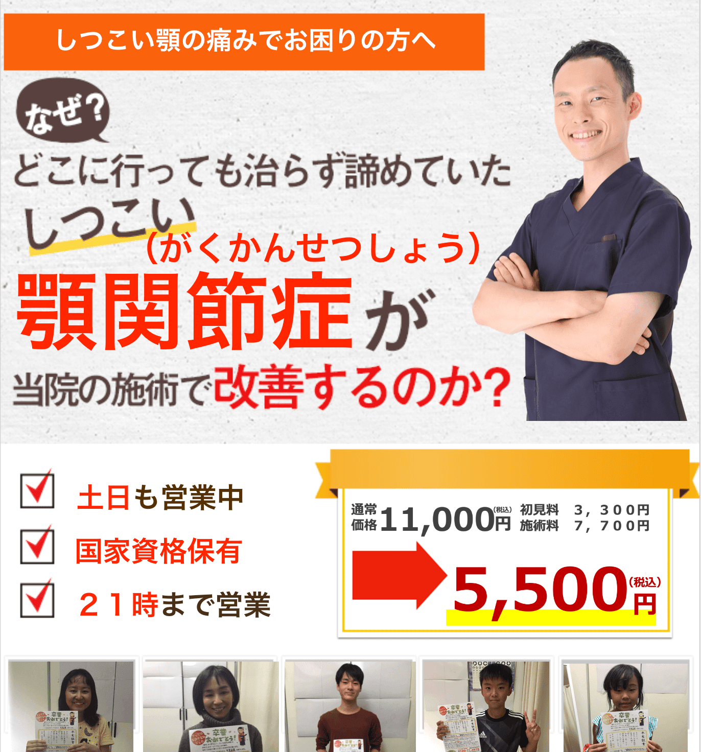 顎関節症は、顎そのもののケアと、顎周囲の調節が必要になります。顎だけの対処をしてもなかなか改善されない場合は、首を中心とする硬さを取ることで、良くできます。